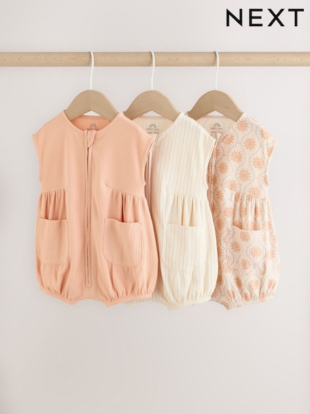 Orange Tonal Patterned Zip Through Baby Rompers 3 Pack