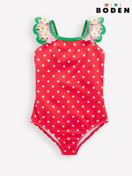 Boden Red Hallie Frill Strap Swimsuit