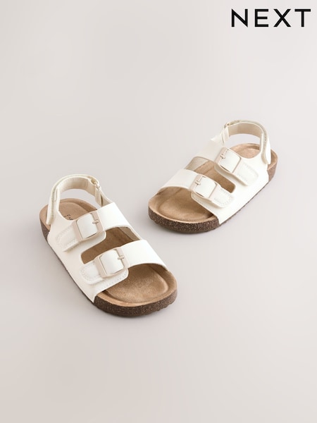 White Standard Fit (F) Double Buckle Cushioned Footbed Sandals