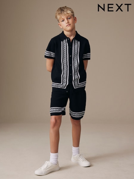 Monochrome Knitted Polo Shirt And Shorts Set (3-16yrs)