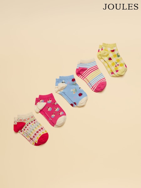Joules Kids' Rilla Pink Yellow 5 Pack Socks