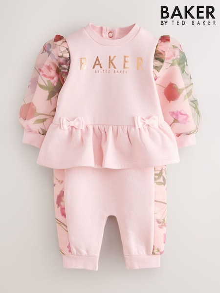 Baker by Ted Baker Pink Organza Floral Sleeve Rompersuit