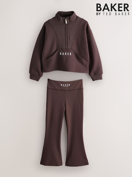 Baker by Ted Baker 2 Piece Chocolate Zip Neck Sweat & Flare Set