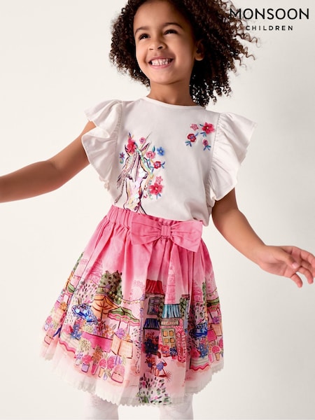 Monsoon Pink London Scene Print Skirt