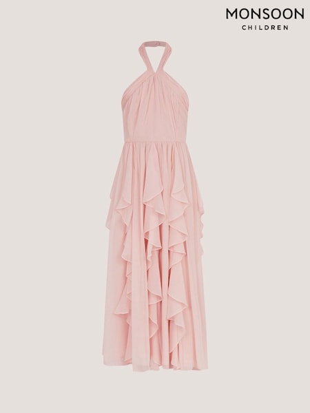 Monsoon Pink Arizona Halter Ruffle Prom Dress