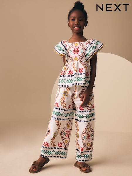 Multi Border Ruffle Blouse and Trousers Set (3-16yrs)