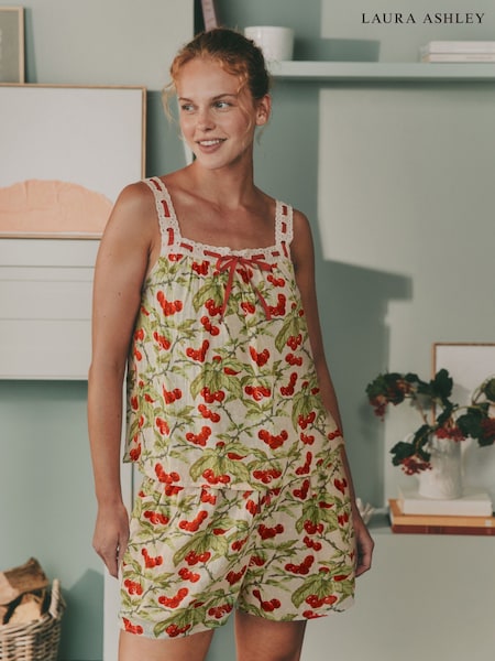 Laura Ashley Red/Green Cramwell Orchard Cotton Dobby Woven Shorts Set