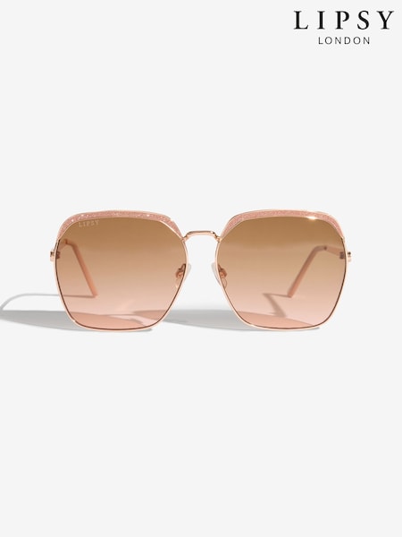 Lipsy Brown Oversized Glitter Metail Frame Sunglasses