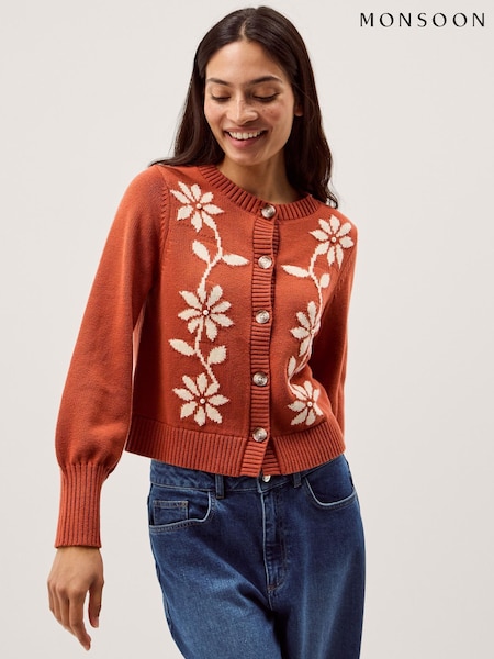 Monsoon Orange Fiona Floral Embroidered Cardigan