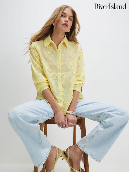 River Island Yellow Embroidered Cutwork Shirt