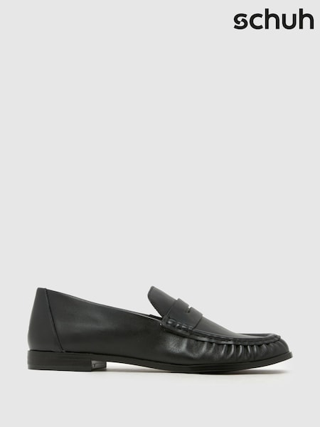 Schuh Black Lewis Leather Ruched Loafers