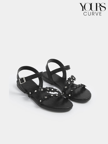 Yours Curve Black Extra Wide Fit Ditsy Floral Sandals