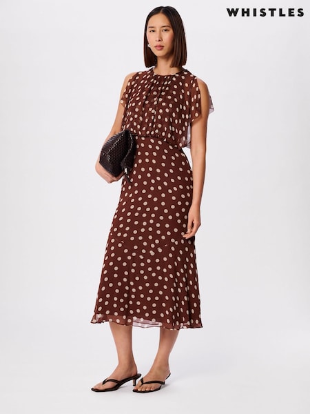 Whistles Brown Polka Dot Print Midi Dress