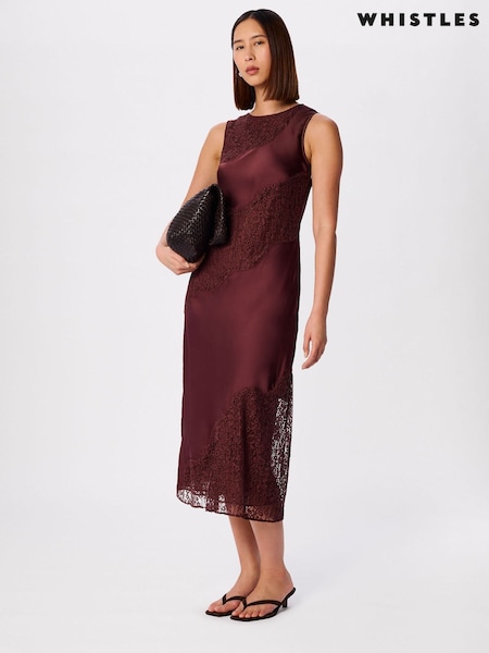Whistles Brown Lace Insert Midi Dress