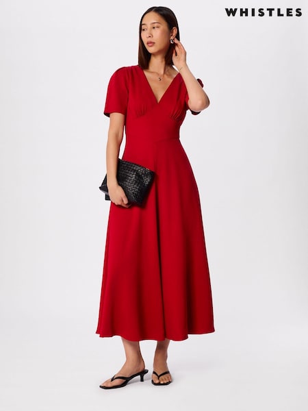 Whistles Red Panel Detail V-Neck Maxi Dress