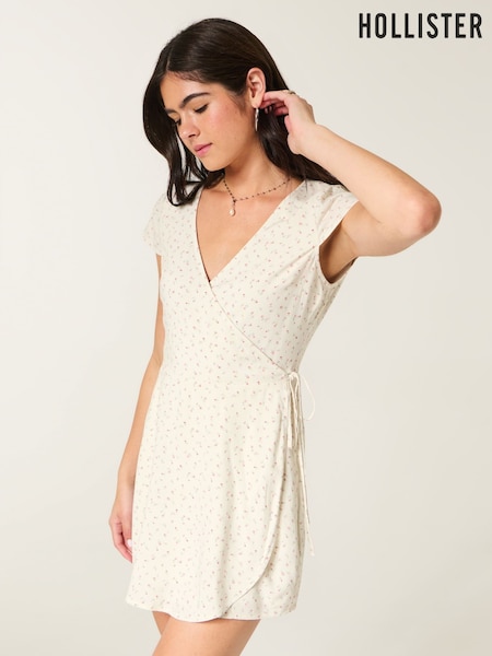 Hollister White Short-Sleeve Wrap Mini Dress