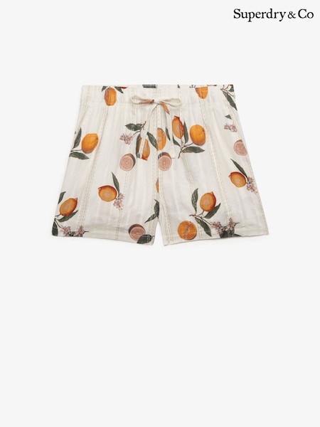 Superdry Cream Cotton Broderie Beach Shorts