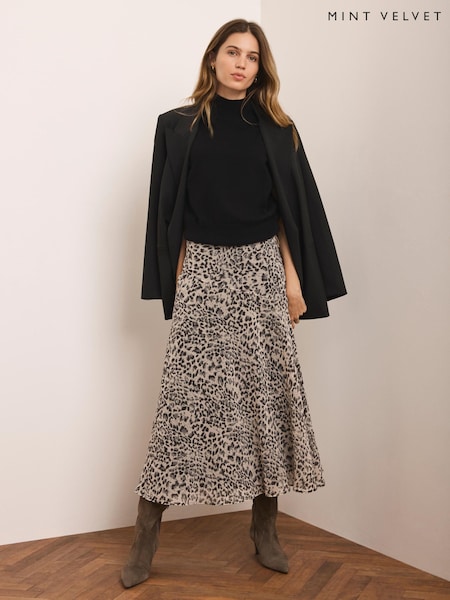Reiss Chocolate Lisa Ruched Front Split Midi Skirt