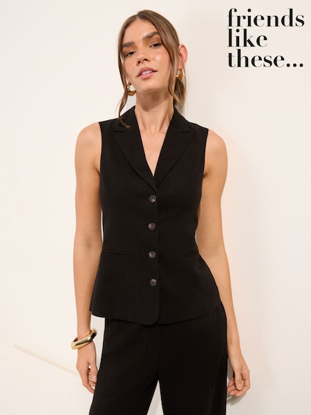 Friends Like These Black Tailored Waistcoat with Linen