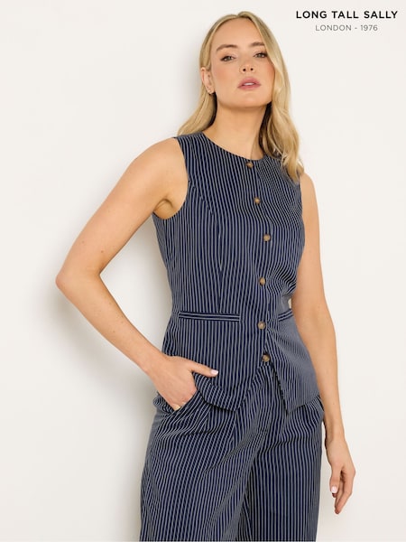 Long Tall Sally Blue Pinstripe Waistcoat