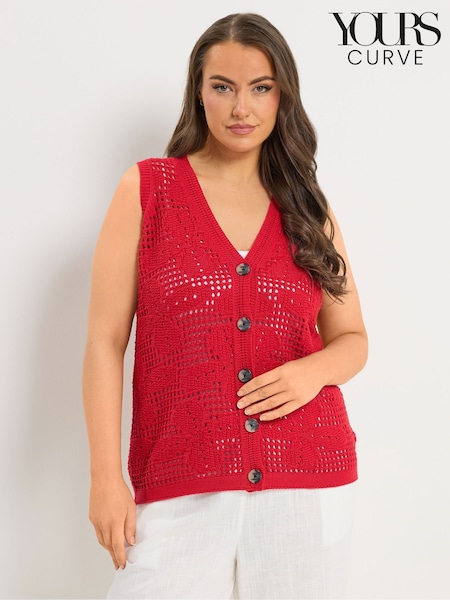 Lipsy Burgundy Red Collared V-Neck Sleeveless Knit Waistcoat