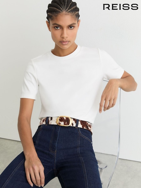 Reiss Animal Athena Pony Hair Cow-Print Oval-Buckle Belt