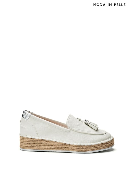 Moda in Pelle White Elga Tassle Trim Espadrilles