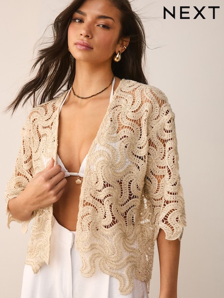Nobodys Child Brown Collar & Crochet Knitted Jacket