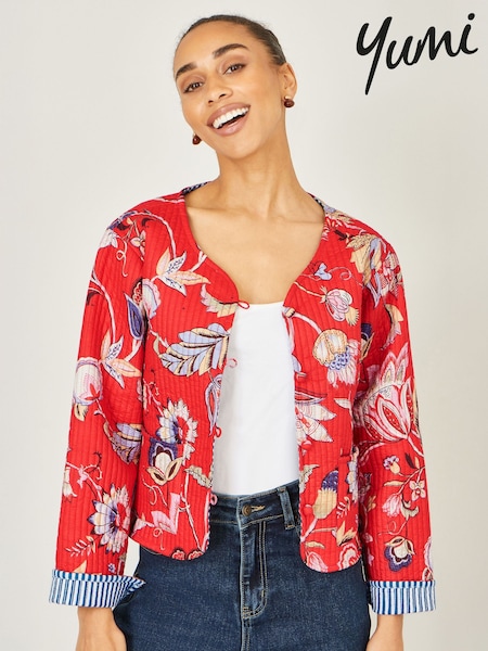 Yumi Red Boho Print Cotton Reversible Quilted Jacket