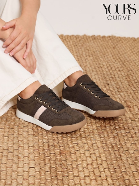 Yours Curve Brown Extra-Wide Fit Side Stripe Gum Sole Trainers