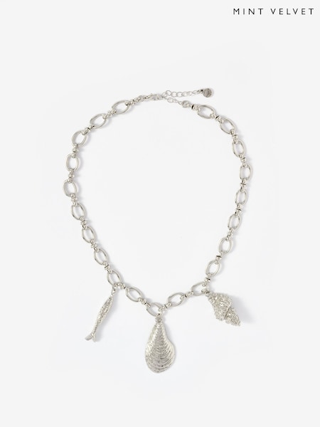 Mint Velvet Silver Tone Shell Statement Charm Necklace