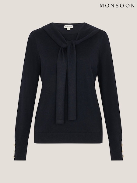 Monsoon Blue Raylee Wrap Ribbed Jumper