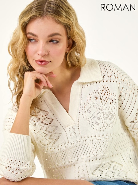 Roman Red Crochet Lace V-Neck Open Knit Jumper