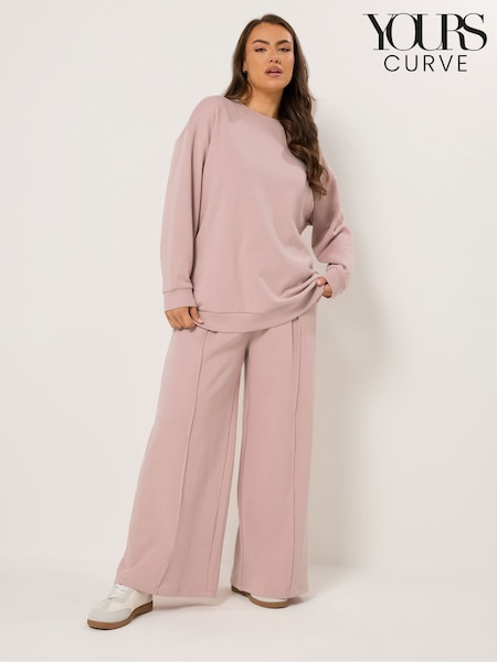 Yours Curve Pink Crew Neck Sweat Top & Joggers Set