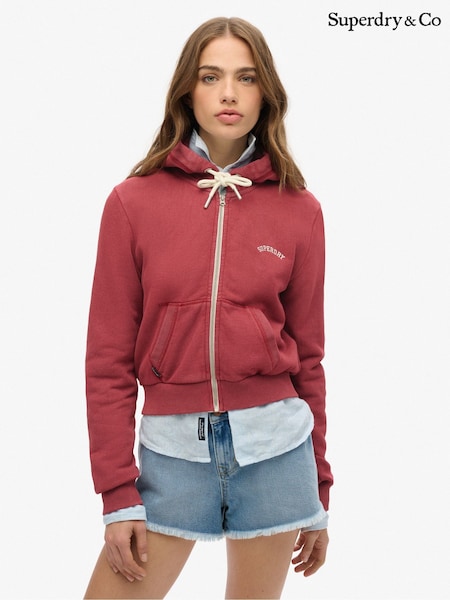 Superdry Red Essential Logo Cropped Full Zip Hoodie