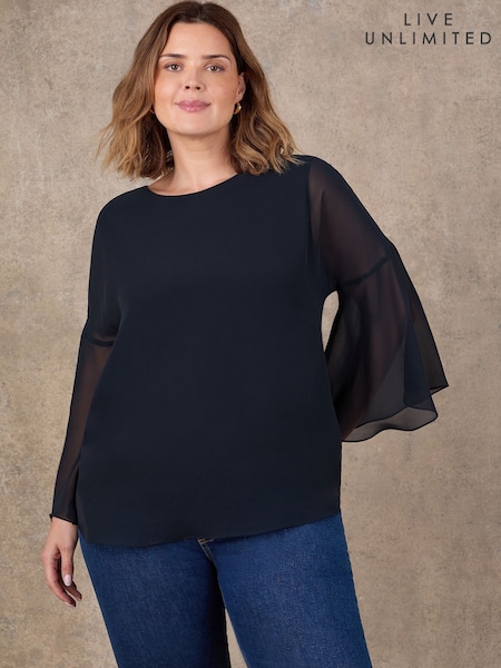 Live Unlimited Black Black Angel Sleeve Overlay Blouse