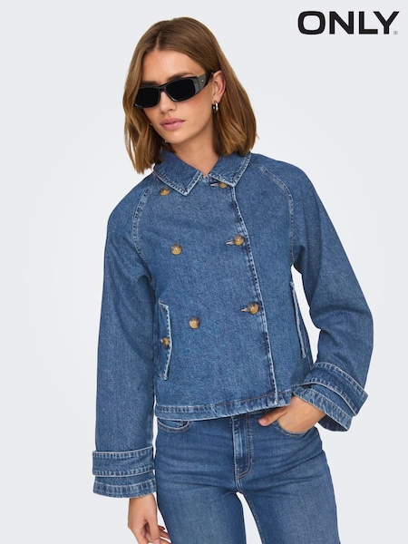 ONLY Blue Denim Short Trench Coat