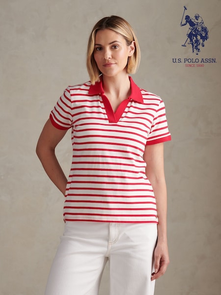 U.S. Polo Assn Red Contrast Collar Stripe Polo Shirt