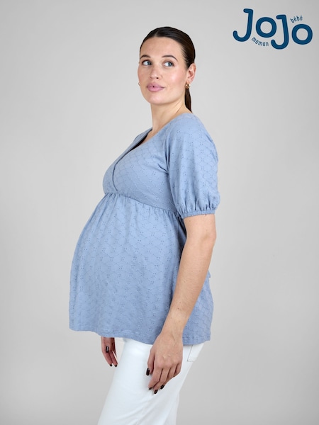 JoJo Maman Bébé Blue Stripe Broderie Maternity Blouse