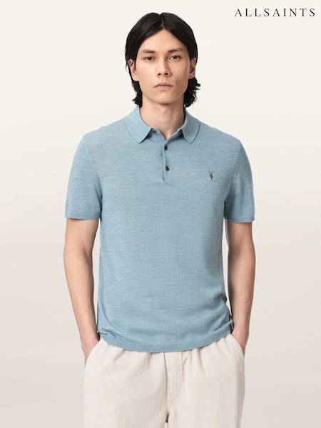 AllSaints Blue Mode Merino Short Sleeve Polo Shirt
