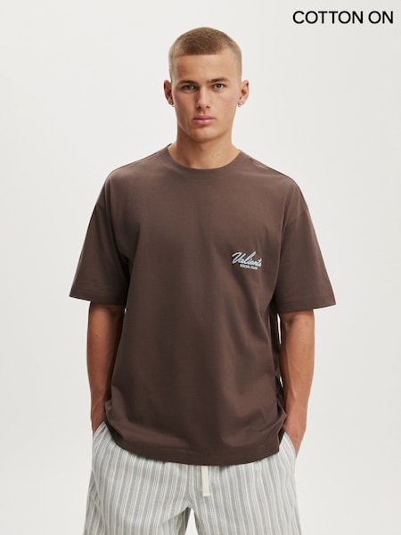 Cotton On Brown Box Fit Text T-Shirt