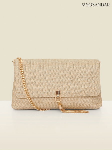 Sosandar Natural Raffia Clutch With Tassel Bag