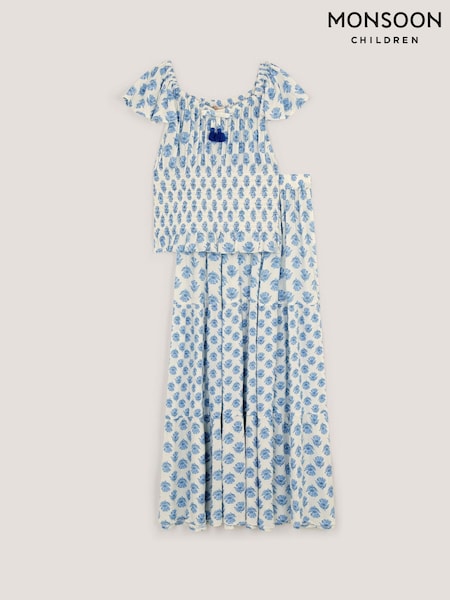 Monsoon Green Floral Patchwork Top & Skirt Set