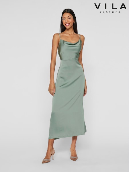 VILA Yellow Dobby Chiffon Short Sleeve Ankle Length Tiered Dress