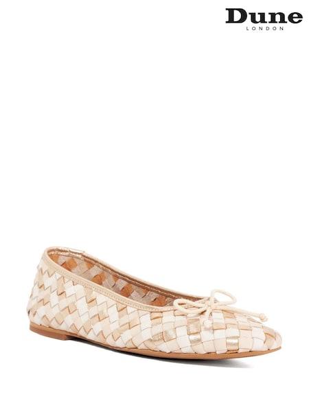 Dune London Off White Standard Fit Leather Heat Woven Ballerina Shoes