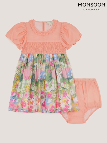 Monsoon Pink Baby Bunny Print Dress & Underwear Set