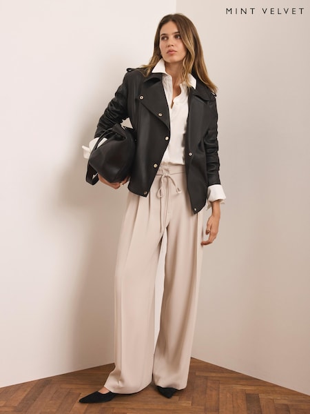 Mint Velvet Natural Stone Washed Wide Leg Trousers