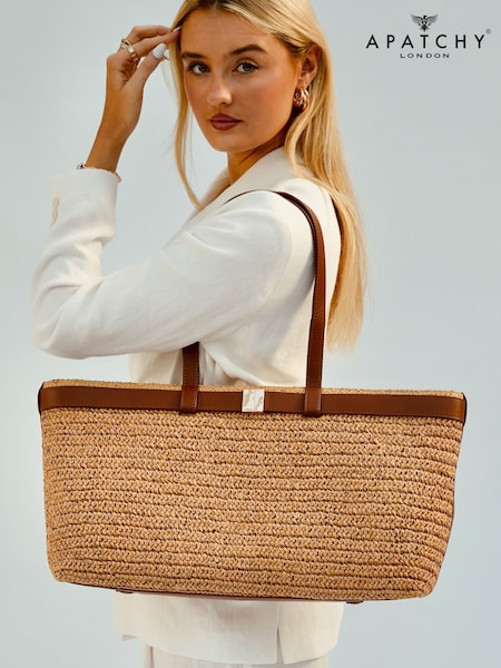 Apatchy Brown The Esme Raffia Tote Bag with Leather Trim