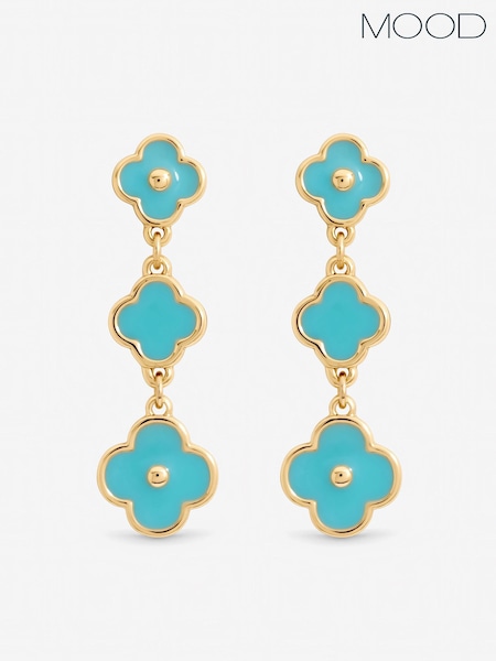 Mood Turquoise Blue Gold Tone Clover Multi Row Earrings